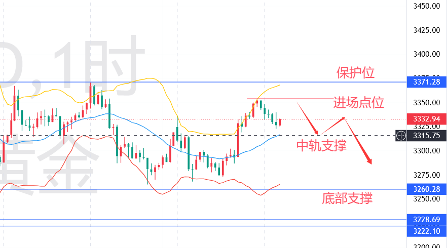 秦氏金升个人还是保持后市金价会跌破3260去到3228附近,这个需要时间的验证 ,我们继续关注就好。现在金价在高位回落,亚盘关注一下3315中轨支撑情况,如果有反弹动作 ,那么老秦建议在凌晨高点3352附近做空看跌,先去试探3315中轨的情况,中线可持续下看3260-3270的区间。